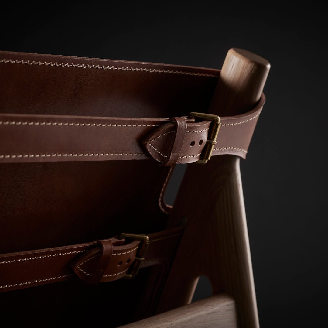 The Hunter Lounge Chair is Afdal’s elegant take on the classic “hunting chair”—all rugged charm wrapped in refined simplicity. With saddle leather stretched taut over a sleek wooden frame and adjustable brass-buckled belts, it’s a masterclass in what Afdal did best: “simplexity.” Every curve is considered, every detail deliberate—from the double-layered leather and matching edge stitching to the fluid lines that set it apart from its bulkier mid-century cousins. Timeless, tactile, and built to last—Hunter is ready to roam, or just sit back and stay awhile.