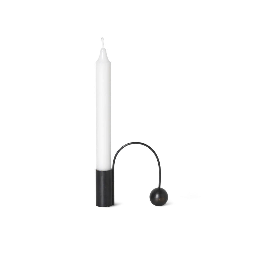 The Balance Candle Holder displays an exercise in mastering the art of balance, each part counter-weighing the other to reach a moment of tranquil stillness. The geometrical shapes are both sculptural and functional, as the arch may be used as a handle to carry the candle holder.