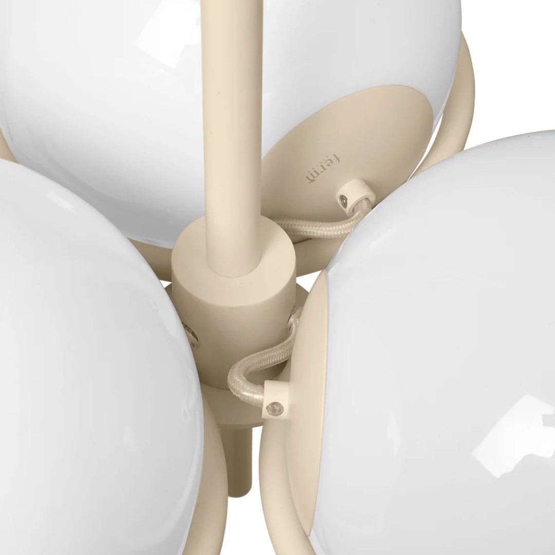 The Era Chandelier is an elegant statement lamp inspired by the clear lines and geometric shapes of the 20's Art Deco Movement. With three opal glass globes resting effortlessly on a light, powder-coated iron structure, the chandelier has a feminine and delicate expression, which nods to the distinctive era and represents everything we love about timeless design and simplicity in construction. Let the Era Chandelier adorn your hallway, stairways, or light up the conversation at the dinner table.