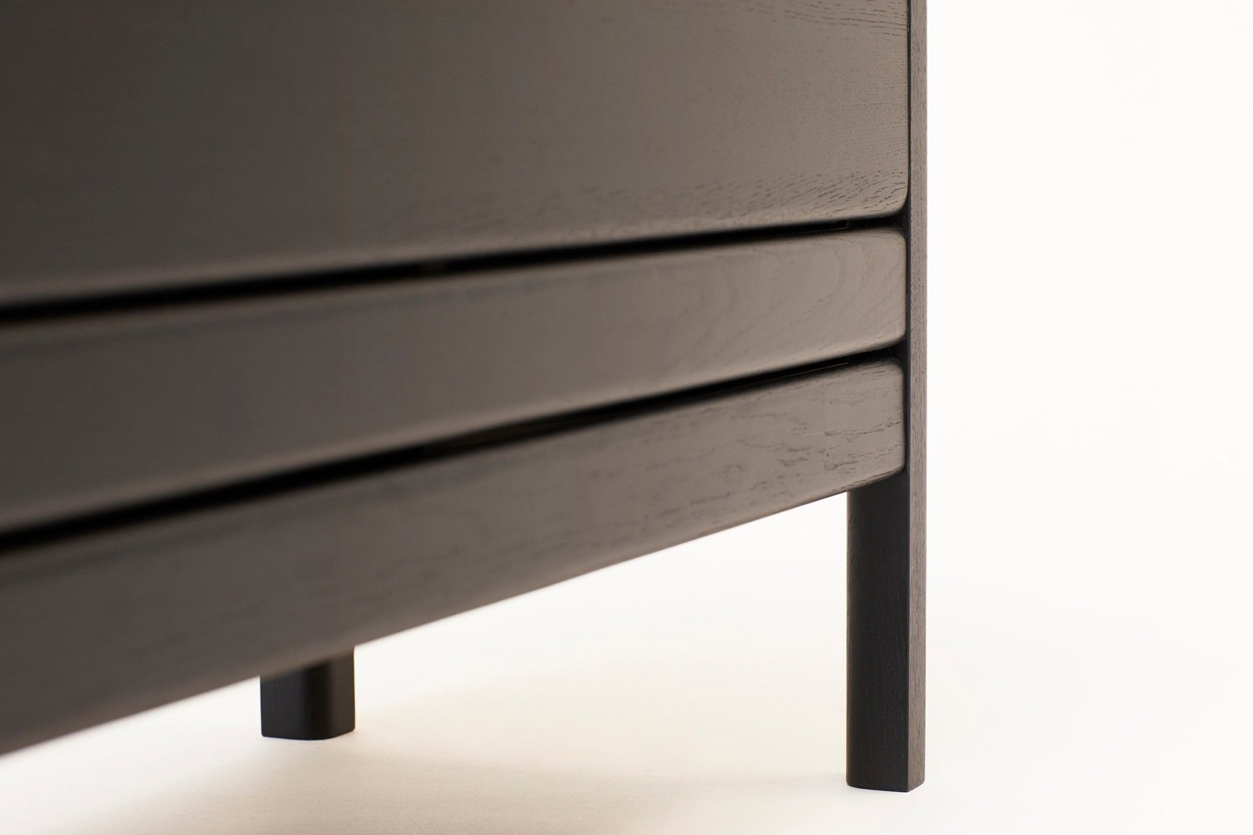 Material: Black-stained Solid European Oak. Black Bend Leather.