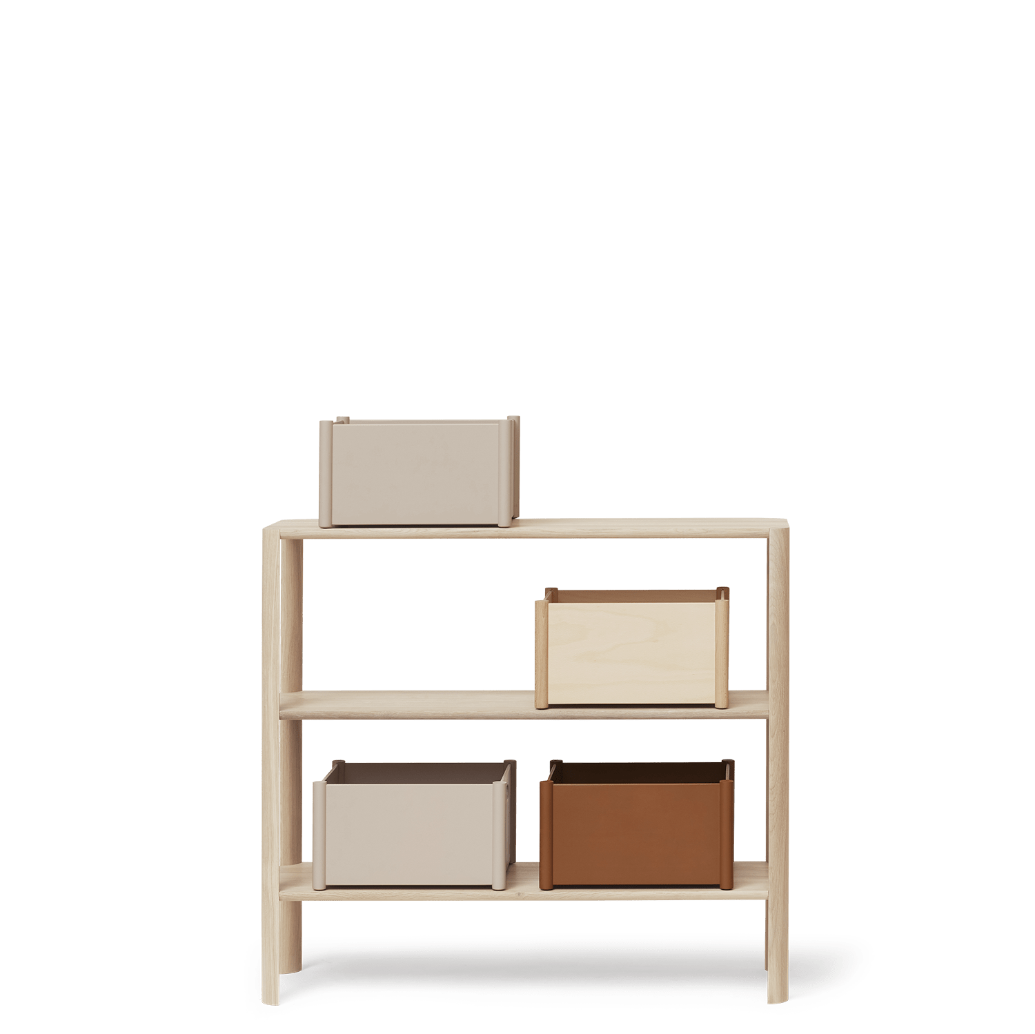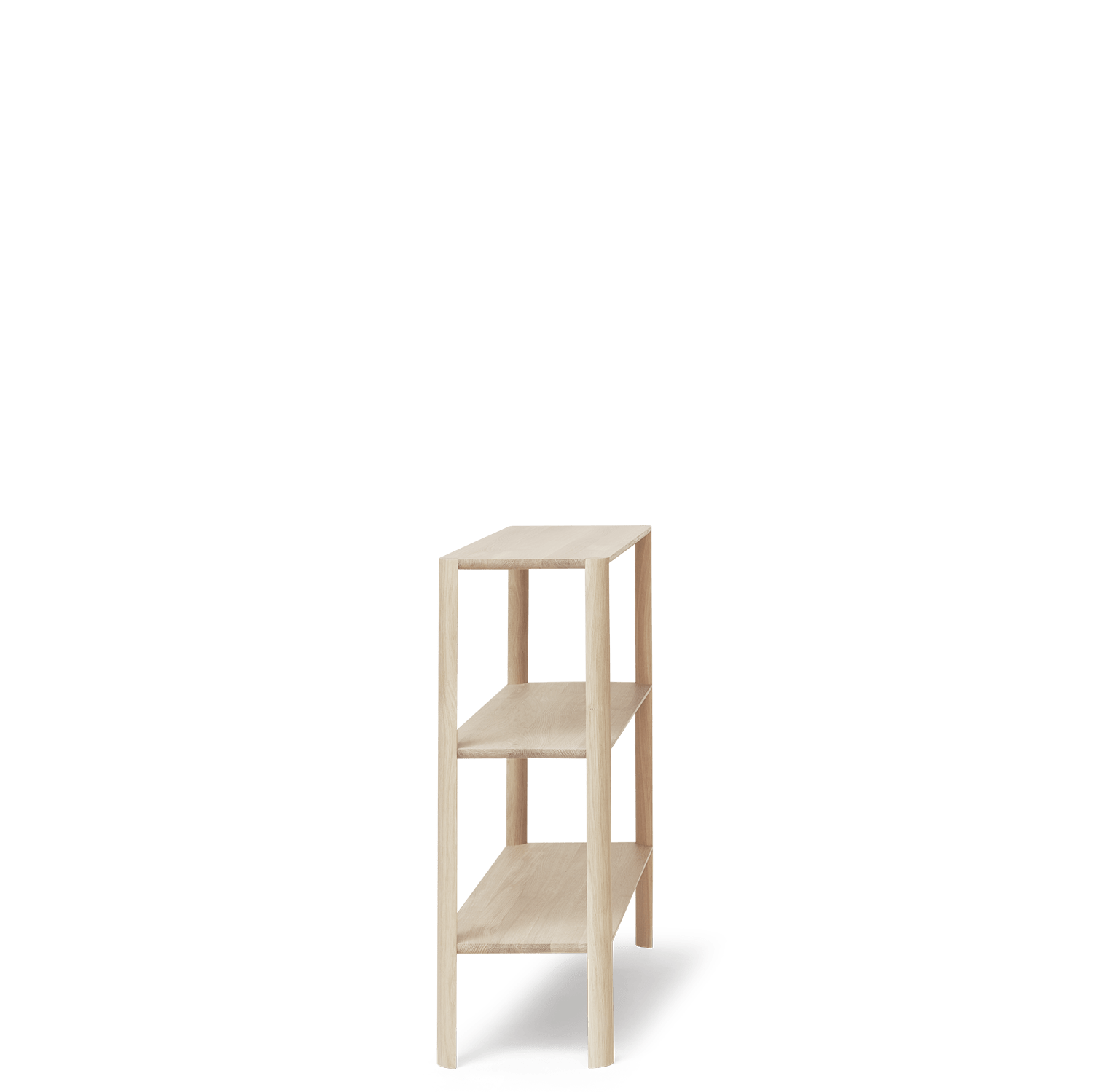 The Leaf Shelf is an attempt to create a shelving system that strikes the ultimate balance between aesthetics, stability and packability. It is characterised by a very pure aesthetic, the aim being that the leg pillars are the centre of attention. With an organic and clean expression – being sculpted in the shape of a leaf – they give the system its signature look.
