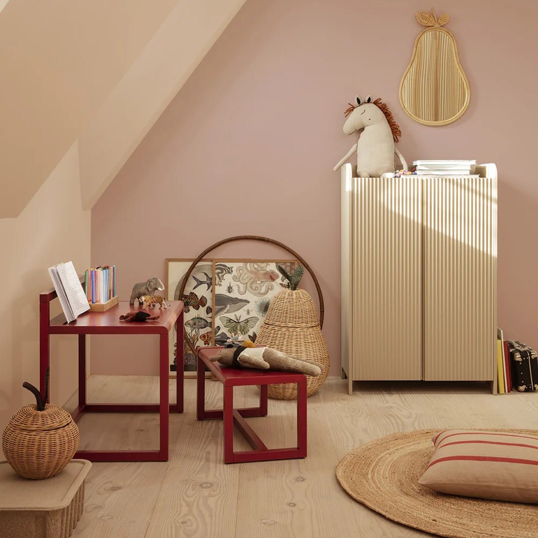 Say hello to the Sill Cupboard – Low, where clever storage meets playful design. With its charming carved grooves (thanks to the French sillon), scalloped doors, and soft rounded corners, this cupboard turns tidying up into a style statement. The raised-edge top adds bonus space for displaying your favorite bits and bobs or keeping them from escaping! Versatile enough for the kid’s room, hallway, bedroom, or kitchen, Sill makes organization feel effortless and a little bit fun.