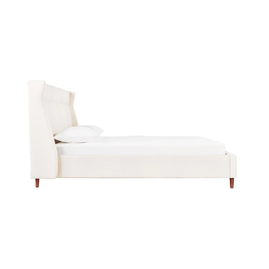 Indulge in the luxurious fusion of tradition and modernity with the Carmichael Bed. Its sleek, fully upholstered headboard, footboard, and side rails, complemented by elegant tapered solid wood legs, create a timeless yet contemporary style. Plus, with a sturdy mattress suspension system and sustainable FSC®-Certified wood, this bed exceeds both style and responsible forest management.