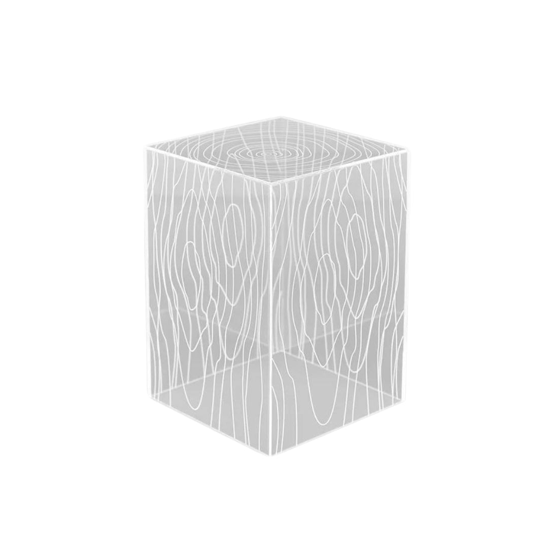 Embrace the fusion of nature and modern design with the Timber Table. The woodgrain patterns onto acrylic creates a stunning five-sided box, perfect for adding a touch of sophistication to any space. Flip it over and use it as a unique storage piece.