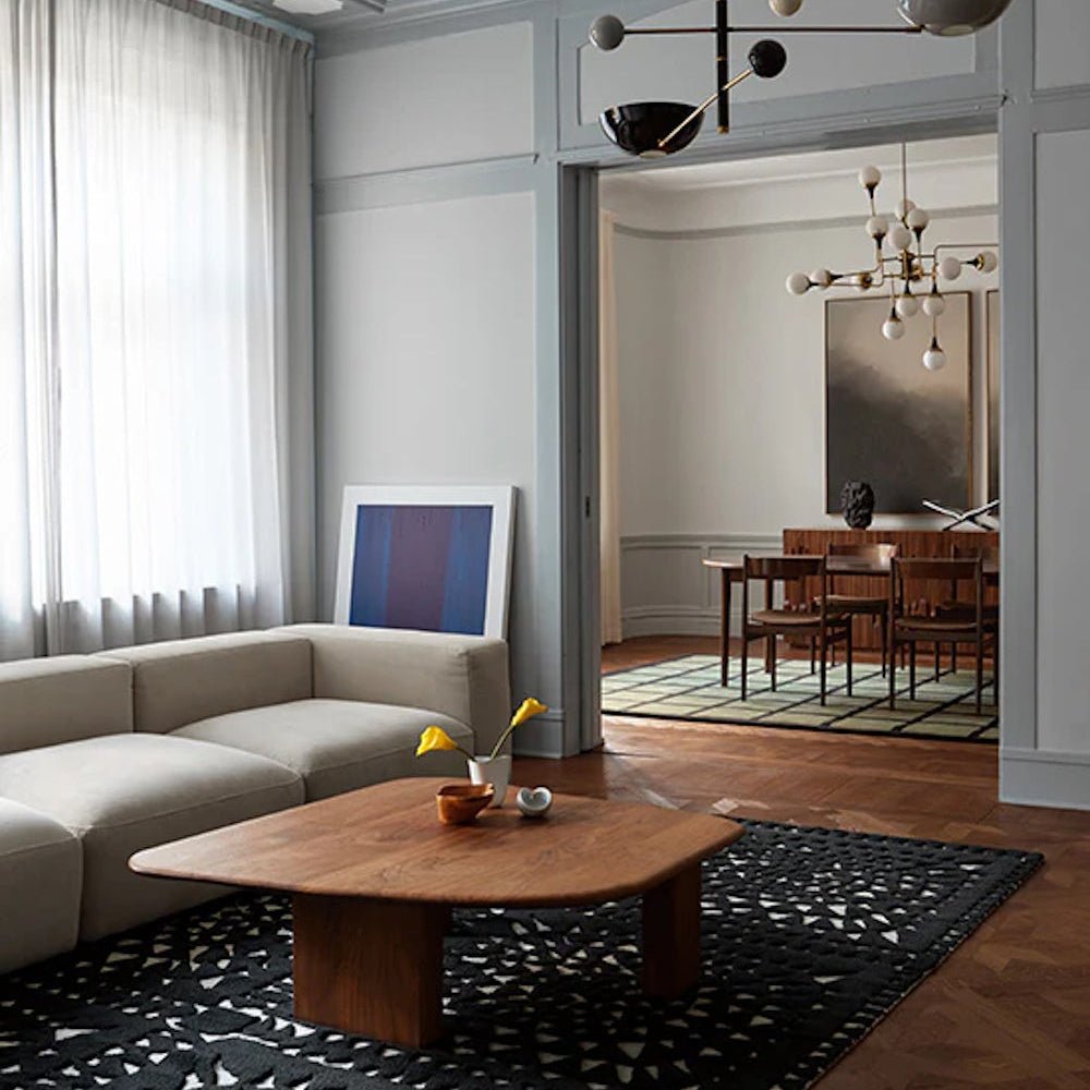 Avenue checked wool rug - inspired by the geometric, repetitive lines and angles of the vibrant city. Clean, bold and confident. Designed to make a striking impact in your home. Hand-knotted technology.