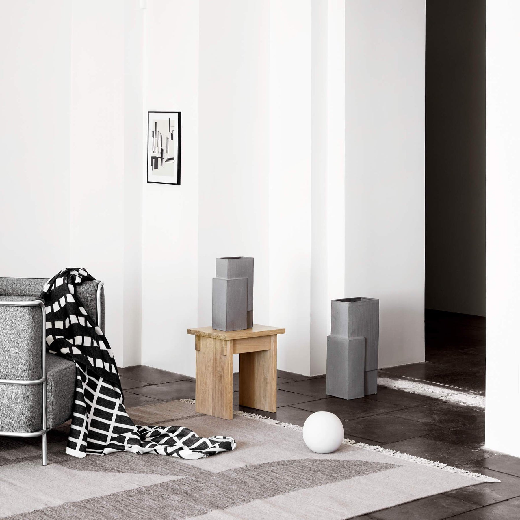 This rug seamlessly blends classic kelim techniques with a modern, minimalist aesthetic. It's not just a rug, but a work of art for your floor that adds a stunning touch to any space. With its rectangular shape, it's easy to incorporate into any room, whether it be a hallway, bedroom, dining area, or wherever it's needed. Crafted from 90% wool and 10% cotton, this rug offers both softness and warmth, making it a popular choice. Plus, wool has natural qualities that make it fire-resistant and resistant to stains. Elevate any interior with a gorgeous, high-quality Danish-designed rug like this contemporary Kelim.