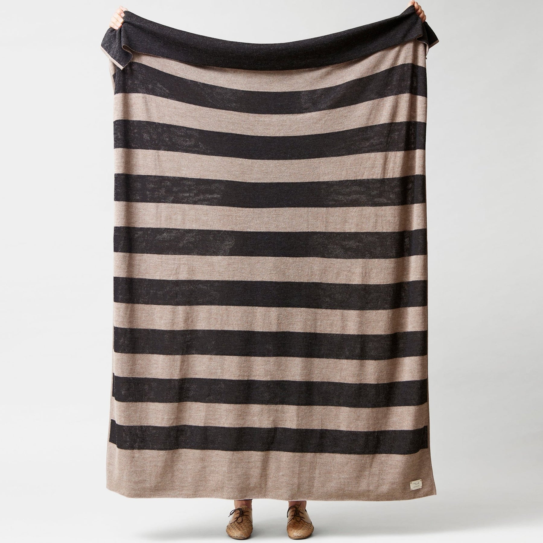 Our Aymara textile line is following Nordic design traditions, but is made of the finest and purest alpaca wool from the highlands of North Bolivia and produced by highly skilled craftsmen in Bolivia. This combination results in a simple yet eminent product line. The textiles are made of 100 % pure alpaca with no use of other wool. They come only in natural colors of alpaca, with no dyeing process being involved. The textiles are knitted like a cozy sweater and not woven like traditional interior textiles. The plaid brings extra luxury for your home and personal comfort.