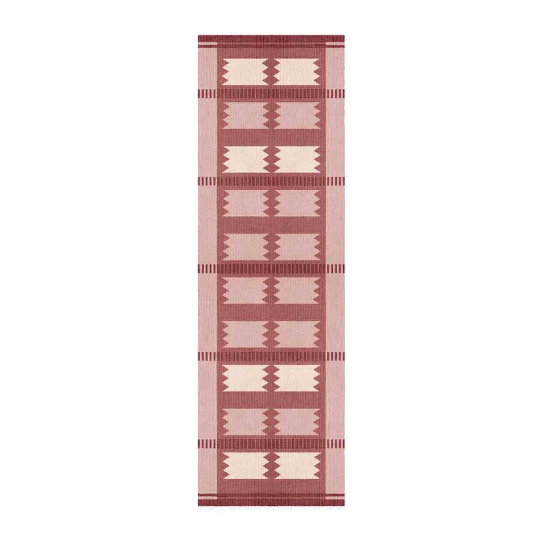 This product is part of Layered's Röllakan collection, which combines modern design with traditional Scandinavian female craftsmanship.Inspired by the traditional röllakan rug, which has played an important role in Scandinavian folk tradition for over 1,000 years, the collection presents five unique rugs in a monochrome color palette and geometric patterns. The rug ‘Hilma’ comes in the colors Fern, Marigold, and Meadow, and the rug ‘Iris’ in the colors Petrol and Raspberry. Like traditional röllakan rugs, these rugs are handwoven, with a vertical warp of 100% cotton and a horizontal weft of 100% wool. The rugs presented in the Röllakan collection are designed to fit in all types of rooms and is particularly suitable for kitchens and dining rooms due to its easy-care properties.