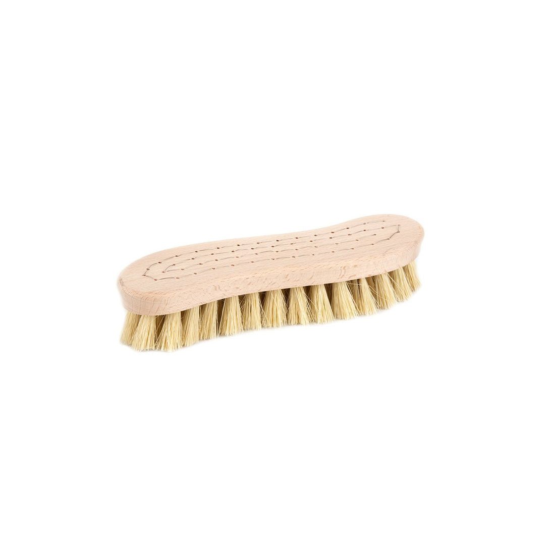 This multifaceted scrubbing brush is ideal for tougher cleaning tasks such as scrubbing rag rugs, floors, and bathtubs. The ergonomic, s-shaped design fits comfortably in your hand, while the white fiber bristles provide effective cleaning. Hand-drawn for lasting quality.