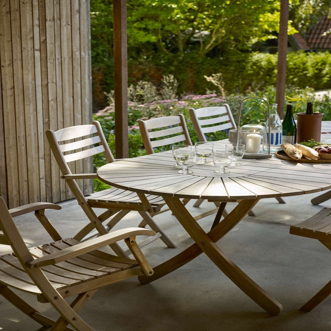Introducing the Selandia Armchair, a fusion of Scandinavian and French styles. Made from 100% FSC-certified teak with precise craftsmanship, this chair offers both elegance and comfort. Collapsible for easy storage. Created with the expertise of Danish architects Anders and Lars Hegelund.