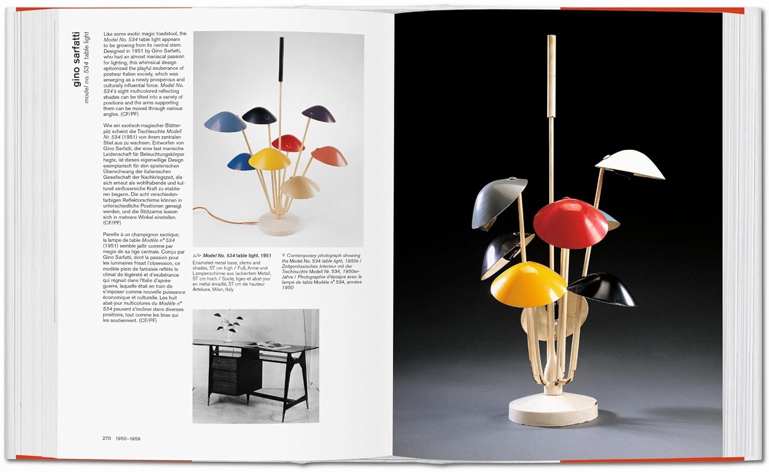 Designed to be a companion to our classic title 1000 Chairs, this edition contains an awesome selection of over 1000 lights. Presented chronologically by decade are the 20th century’s most interesting electric lights, from Tiffany’s beautiful leaded-glass shades to completely outrageous designs from the late 1960s and 1970s to the latest high-tech LED lamps. All major styles are represented here—Arts & Crafts, Art Nouveau, Art Deco, Modern Movement, De Stijl, Postwar, Pop, Radical, Postmodern, and Contemporary—in 640 pages of truly illuminated works.