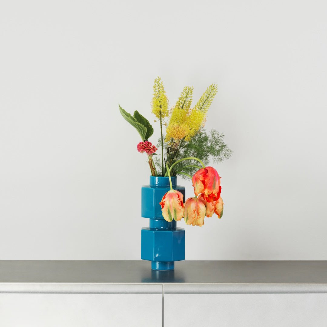 Deko Objects are a series of sculptural objects designed to evoke creativity and personal expression. Comprising a range of different sizes and colors, the objects can be stacked on top of one another to create the desired expression. Use Deko as a decorative element, as a vase or transform it into a functional container for storage purposes with an optional lid in a matching color.