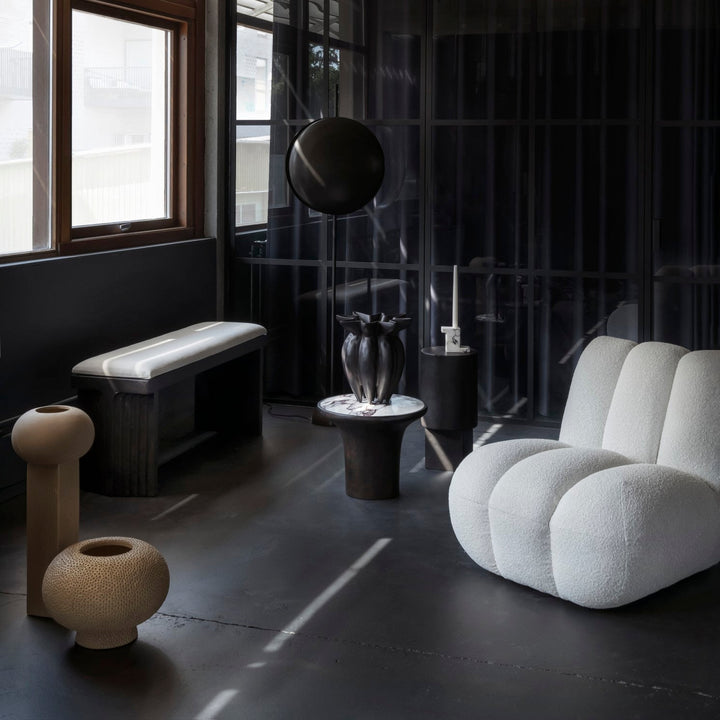 Rich on architectural references, the Empire Vases reminisces building facades to create a slim and vertical design. The riffled surface creates a tactile feeling and shadows changes the vase throughout the day. The height of the Empire Vases makes them ideal for tall flower decorations and long branches. The series is made of ceramic as it is a hand glazed natural product, the colours may vary slightly and while it is not 100% waterproof, a bag for fresh flowers is included.