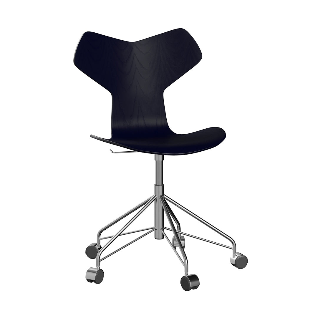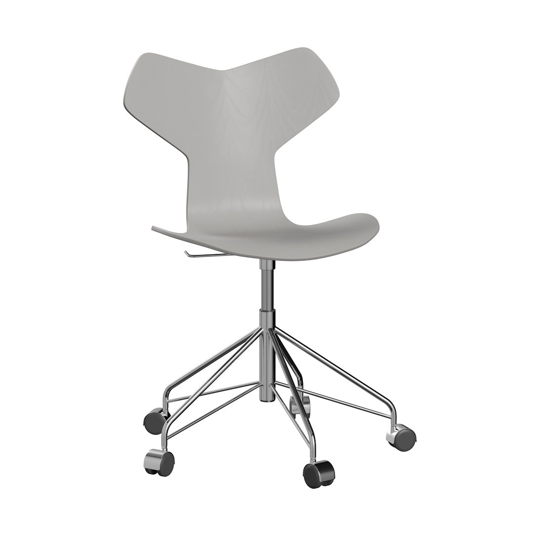Experience iconic luxury with the Grand Prix™ chair. Originally designed by Arne Jacobsen, it features a graphic edge and was awarded the Grand Prix at the prestigious Triennale in Milan. The height-adjustable 3131 swivel chair also boasts a unique five-legged steel base with high-quality aluminum capped castors, improving maneuverability.