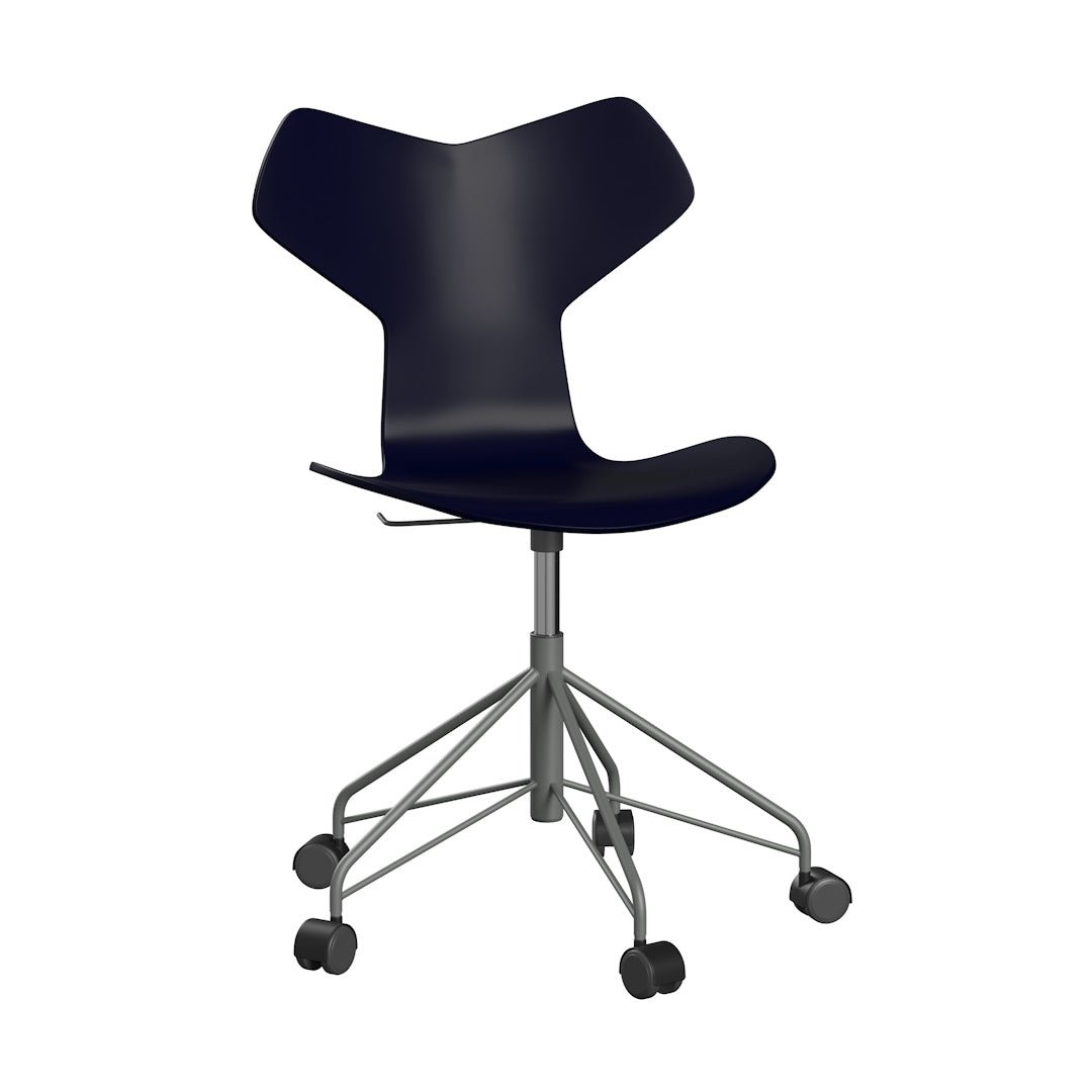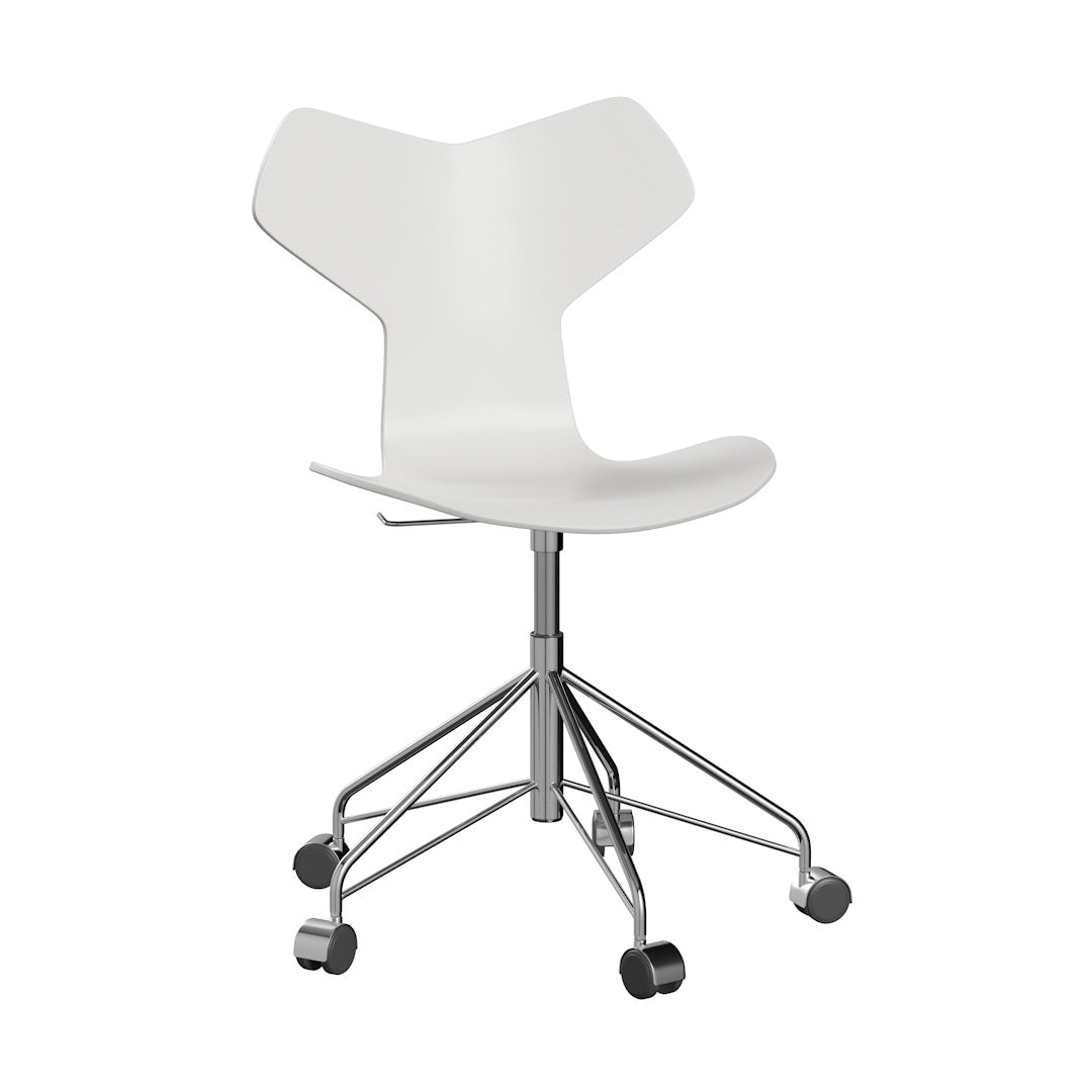 Experience iconic luxury with the Grand Prix™ chair. Originally designed by Arne Jacobsen, it features a graphic edge and was awarded the Grand Prix at the prestigious Triennale in Milan. The height-adjustable 3131 swivel chair also boasts a unique five-legged steel base with high-quality aluminum capped castors, improving maneuverability.