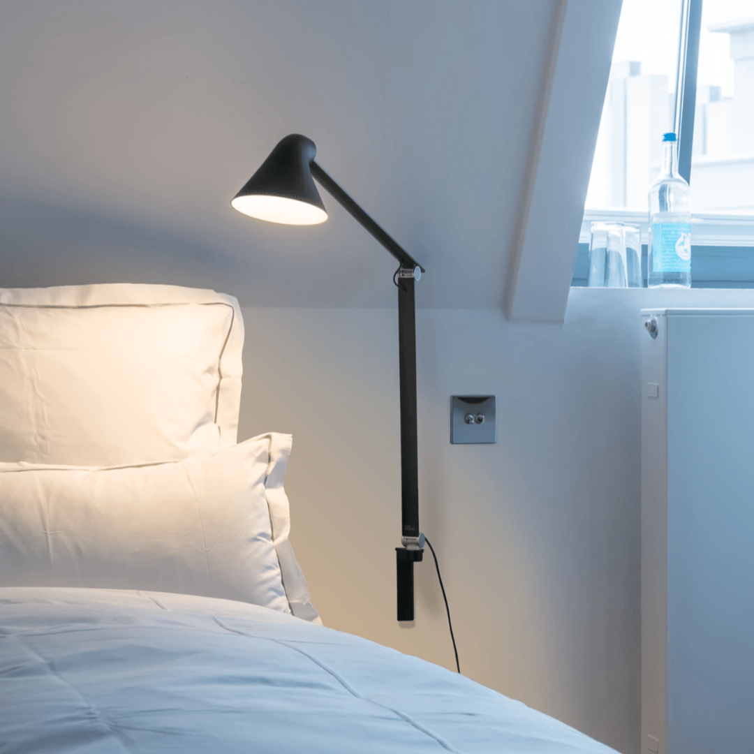 With its LED light source and high positioning, you can easily avoid glare and find the perfect lighting position for any space. Enjoy the benefits of a contemporary interpretation of the classic anglepoise lamp with the NJP Wall Lamp.