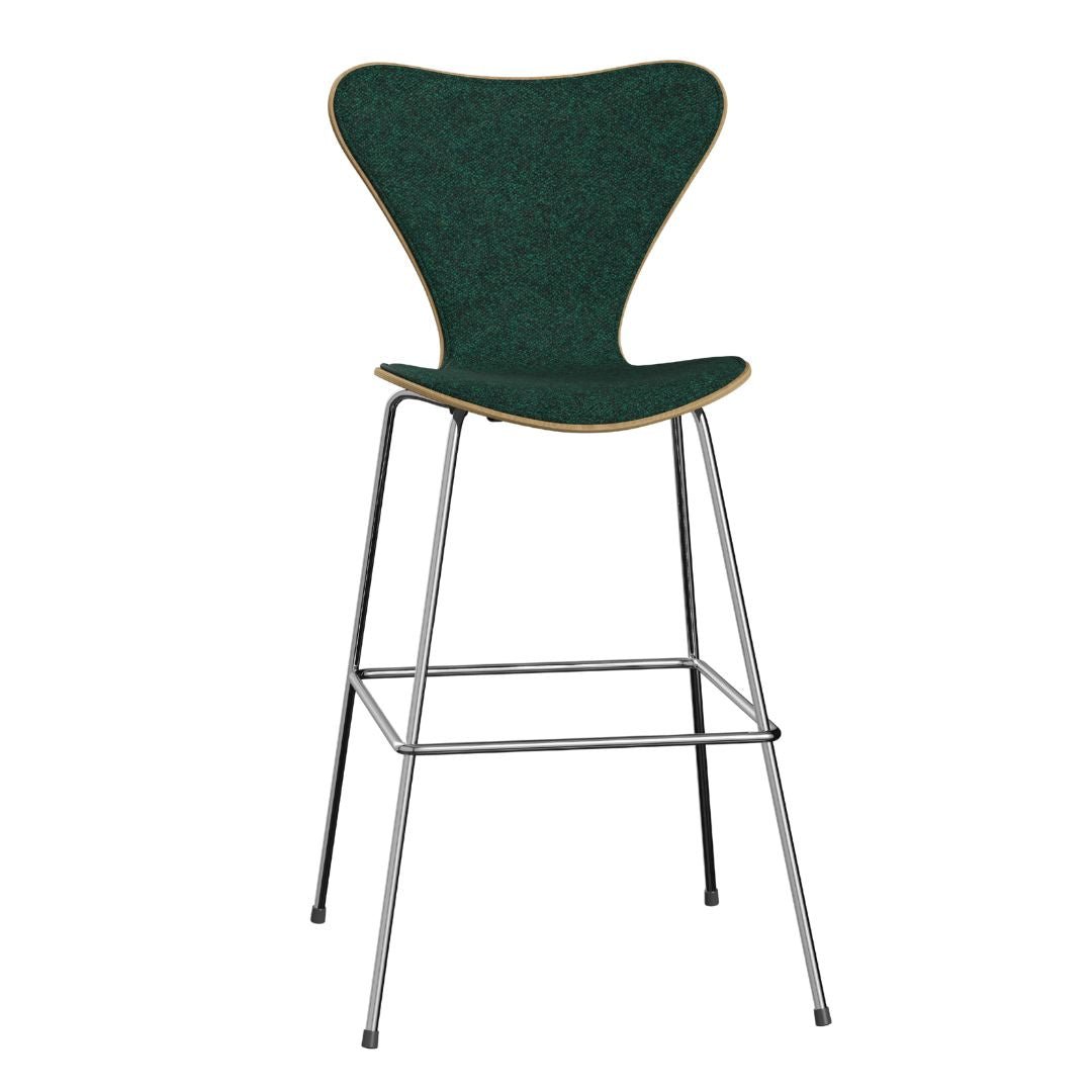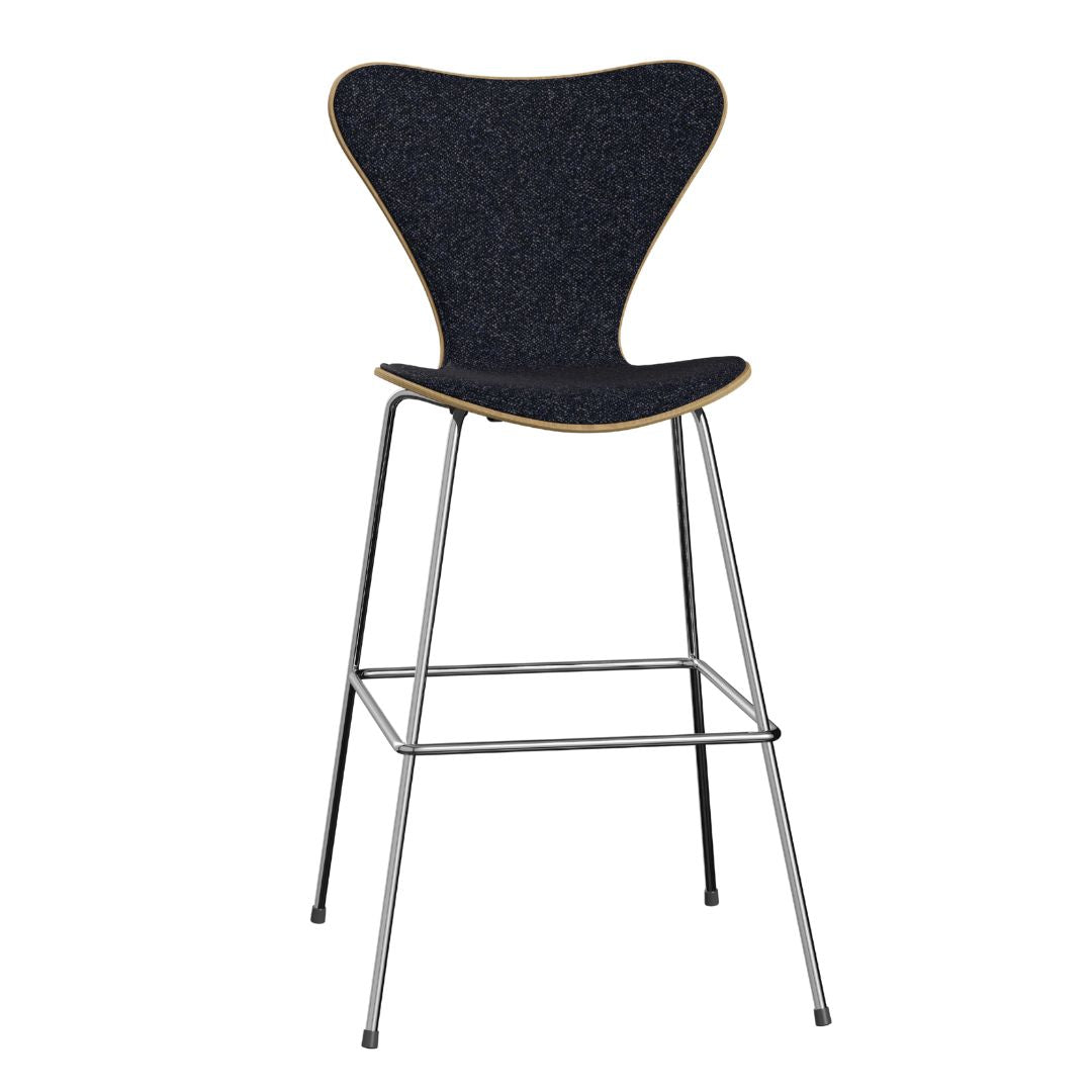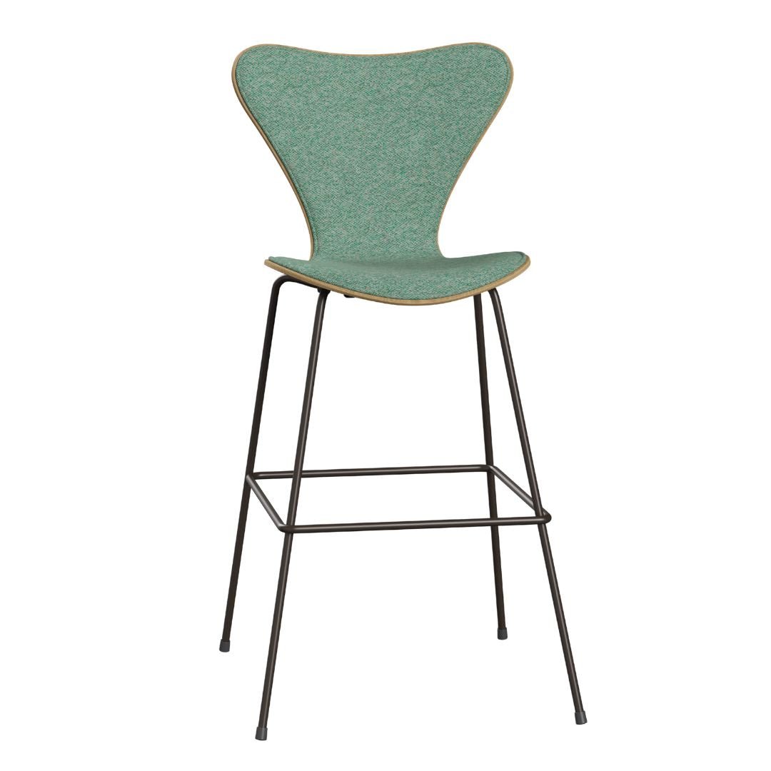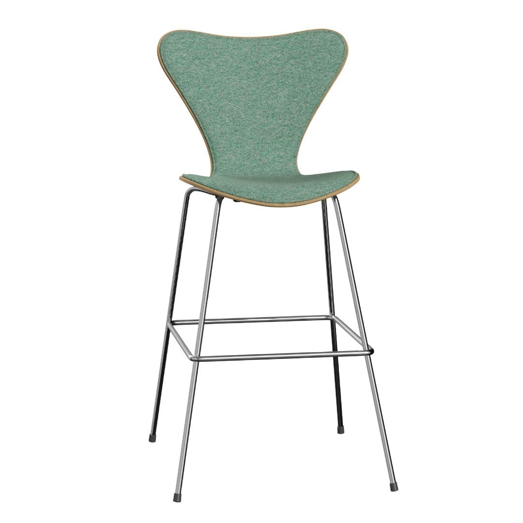 The iconic Series 7™ chair, designed by Arne Jacobsen in 1955, is a timeless and versatile addition to modern furniture. With 9 layers of pressure moulded veneer, it offers strength, flexibility, and durability. The 3197 barstool, featuring a tubular steel footrest, maintains the chair's clean and simple construction.