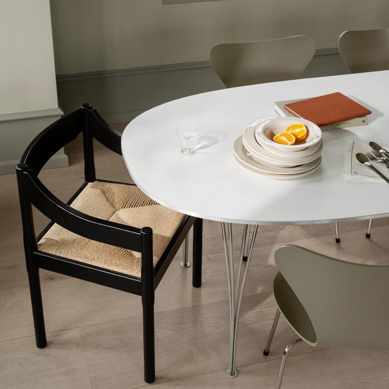 Discover the elegant and functional Superellipse™ table from Fritz Hansen’s Table Series. Inspired by a traffic solution in Stockholm, this super elliptical table comfortably seats six chairs for inclusive gatherings. With EU Ecolabel certification, it meets the highest environmental standards.