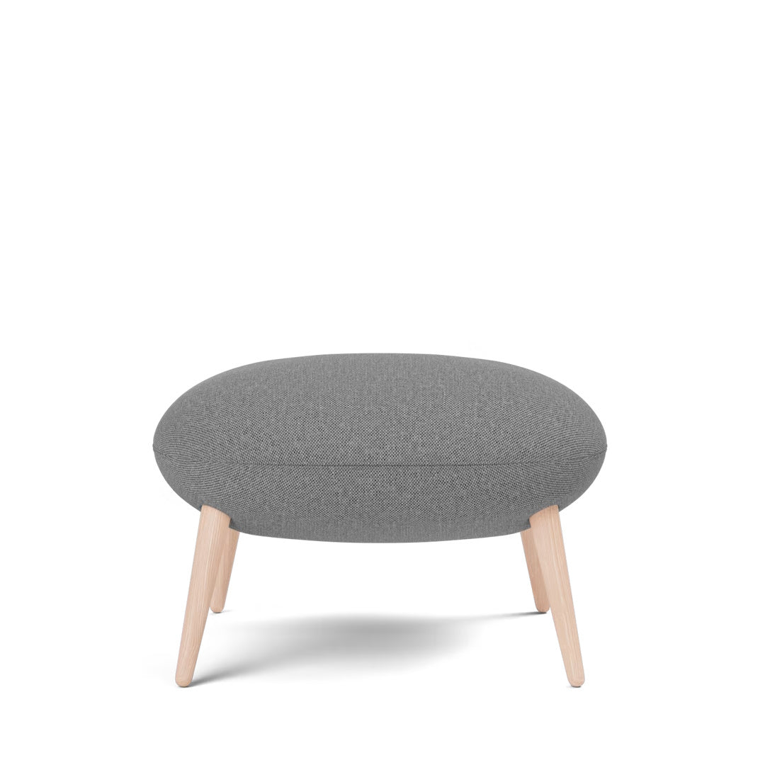 Fully upholstered footstool with solid wood legs mounted with metal thread. Inner shell in moulded polyurethane foam, reinforced with a steel frame.